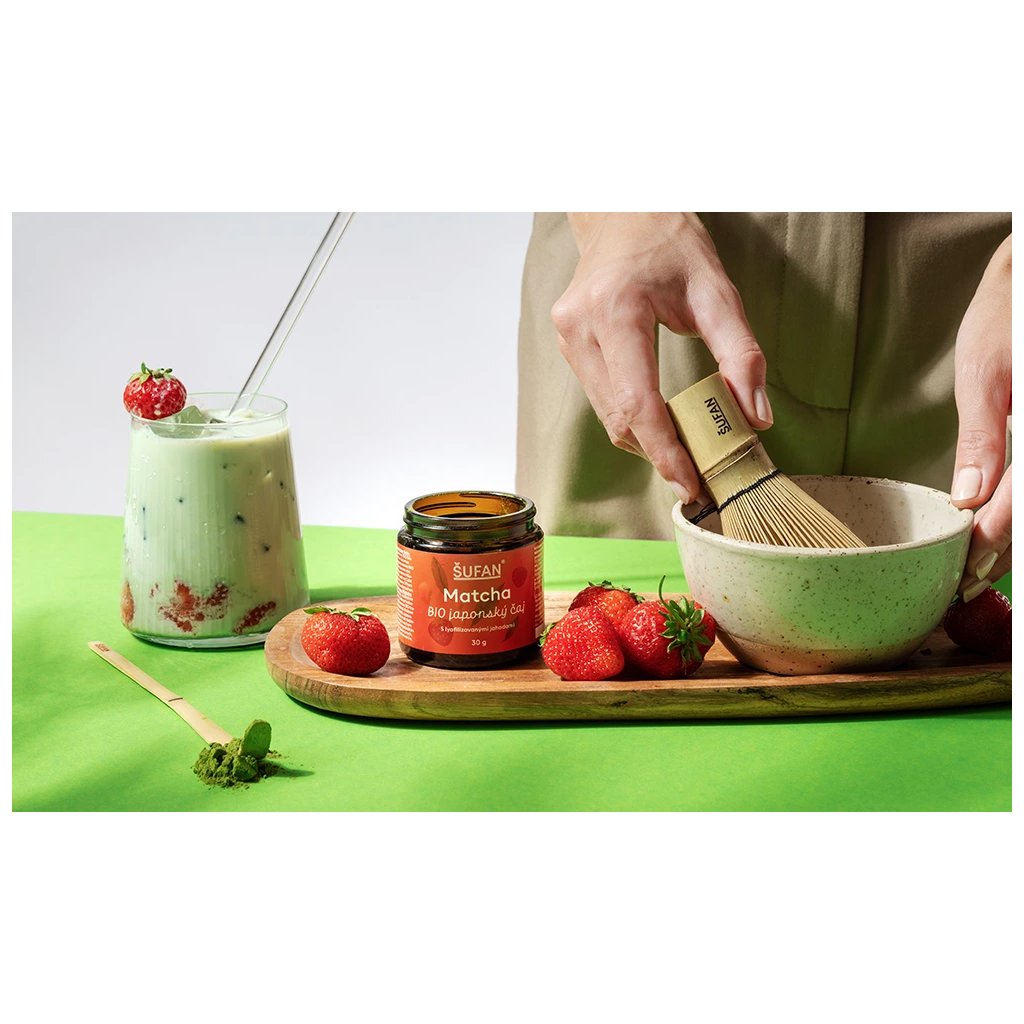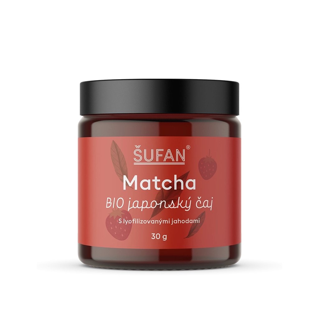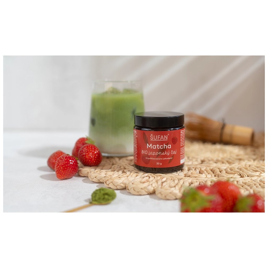 BIO japonský čaj Matcha s lyofilizovanými jahodami 30g Šufan