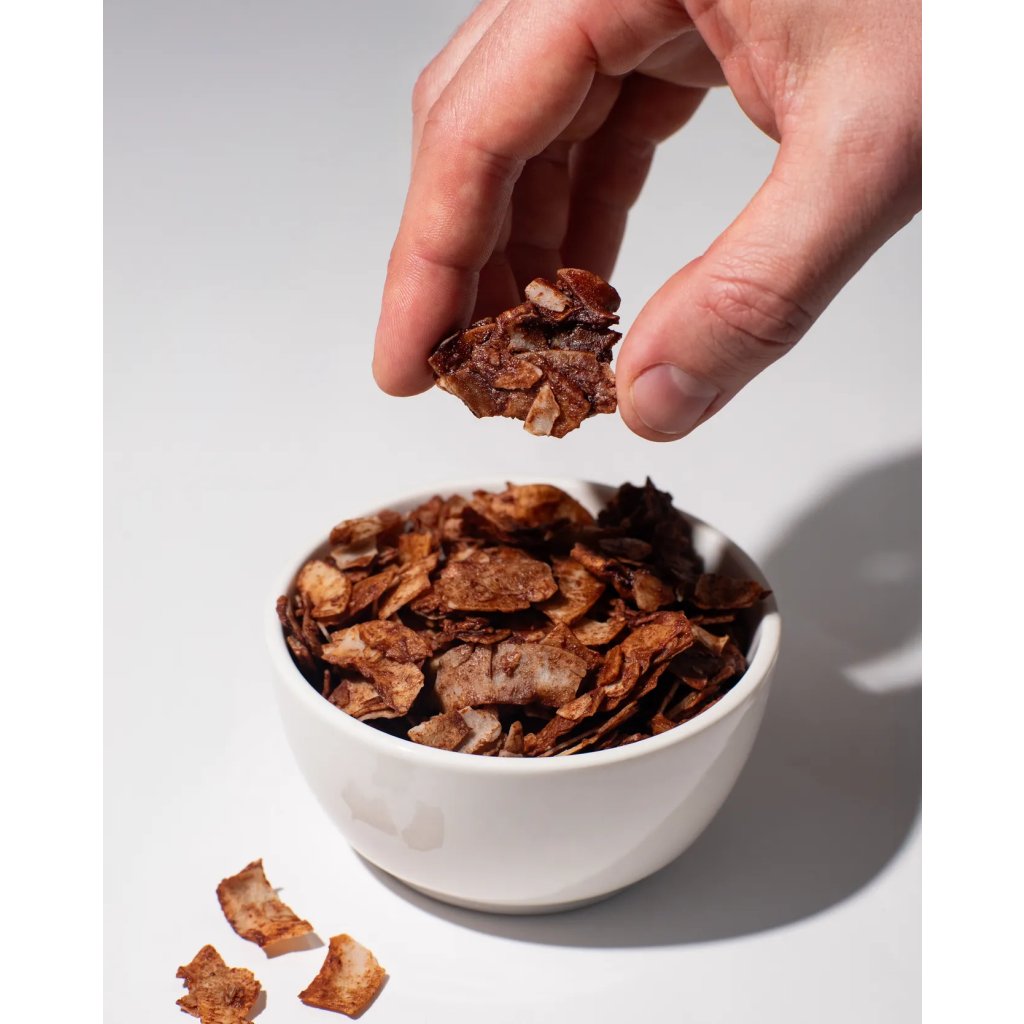 Kokos plátky* 73 %, kokosový sirup*, kokosový cukr*, voda, kakaový prášek* 6 %, mořská sůl.