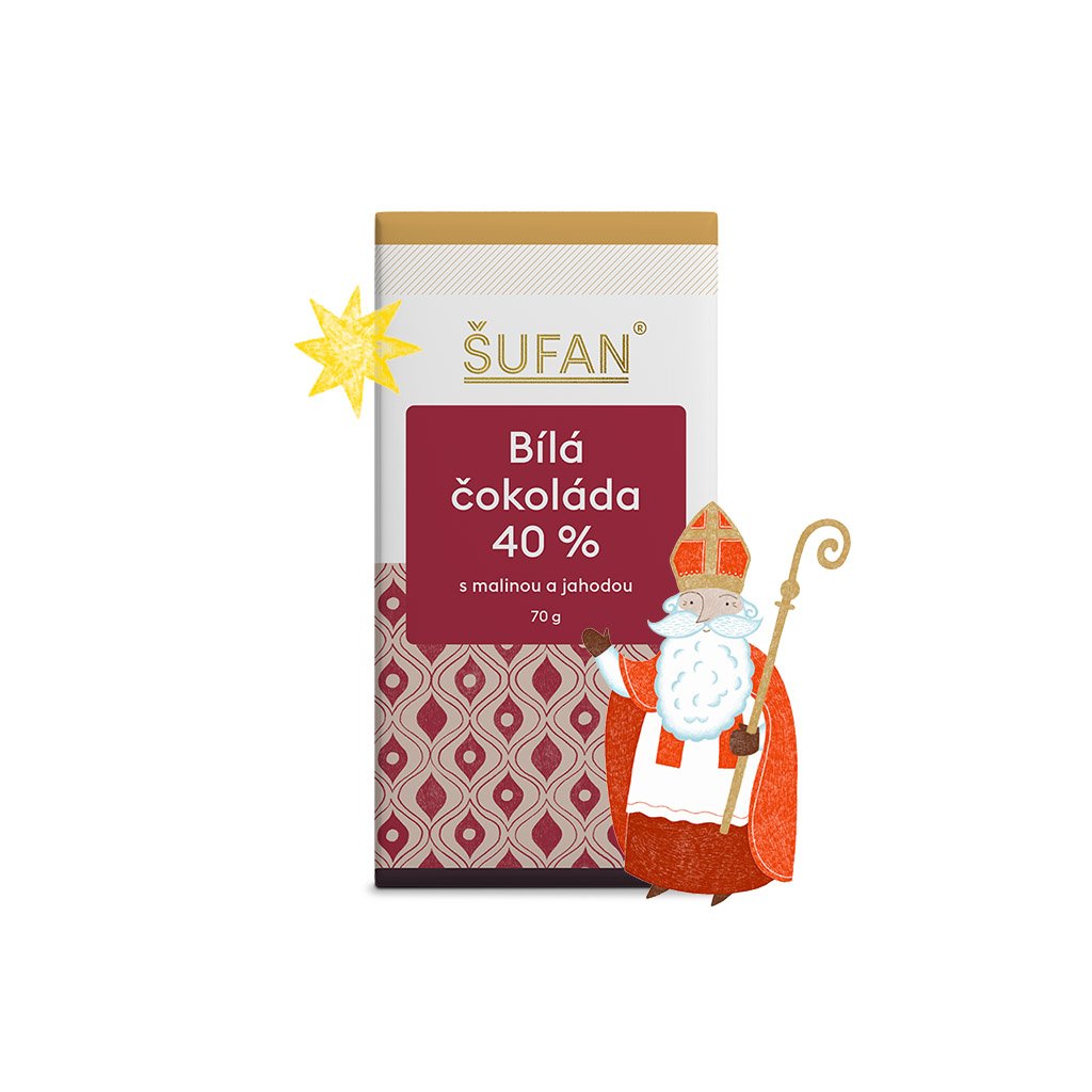 Bílá čokoláda 40% s malinou a jahodou 70 g Šufan