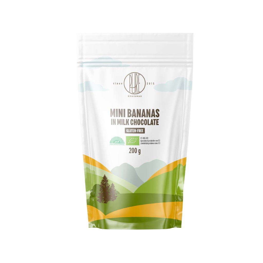 BrainMax Pure Mini banánky v mléčné čokoládě, BIO, 200 g