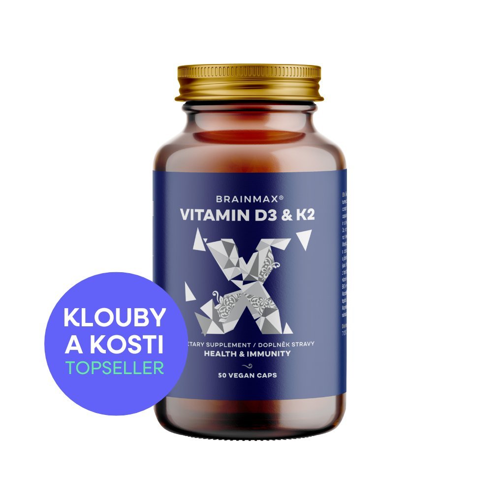 BrainMax Vitamin D3 & K2, D3 5000 IU / K2 jako MK7 all-trans K2VITAL®DELTA 150 mcg, 50 rostlinných kapslí