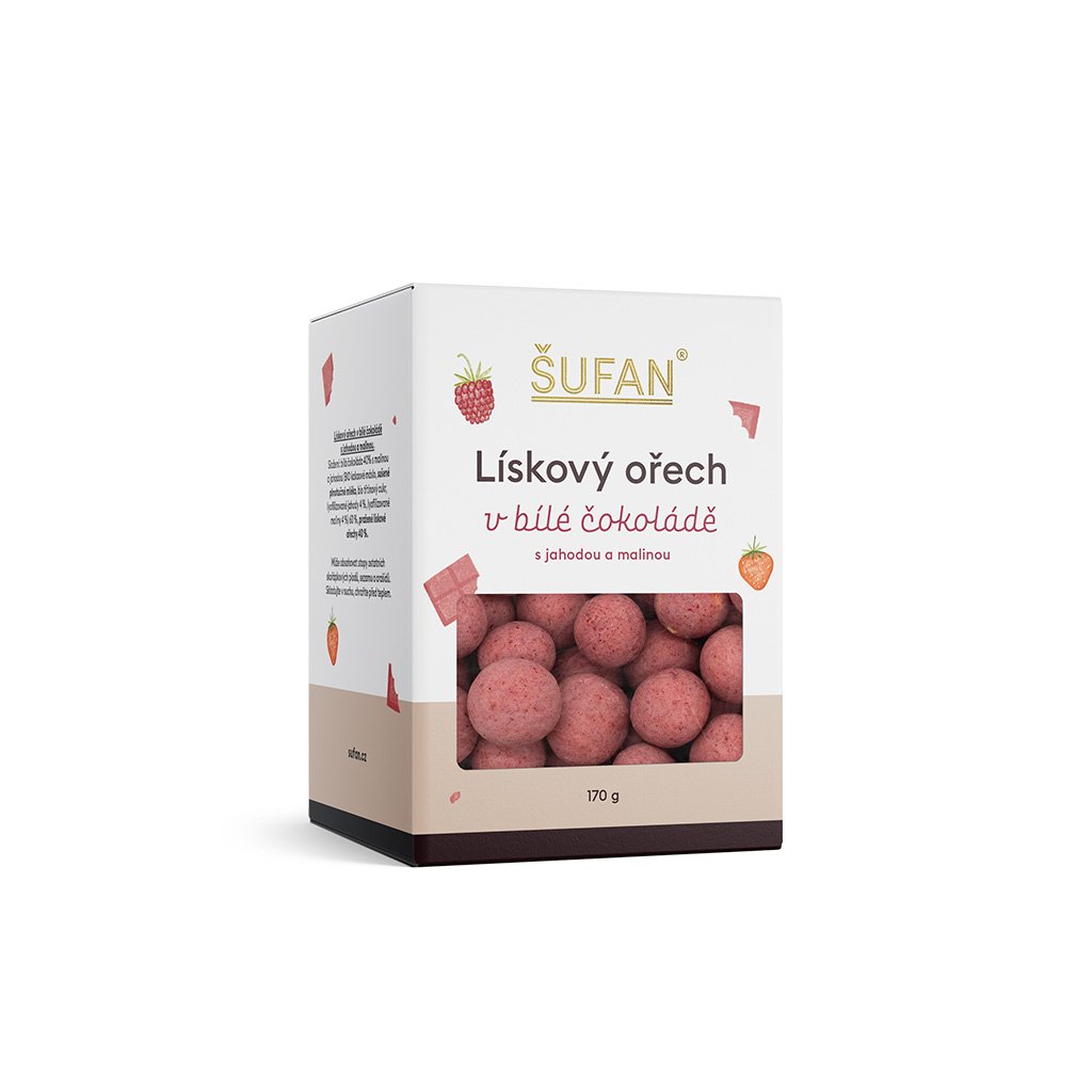 Haselnuss in weißer Schokolade mit Erdbeere und Himbeere 170 g Šufan