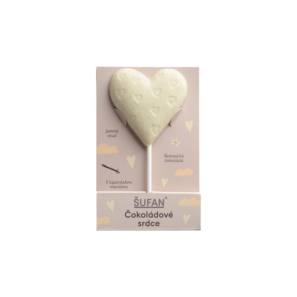 Schokoladenherz aus weißer Schokolade mit ugandischer Vanille 27 g Šufan