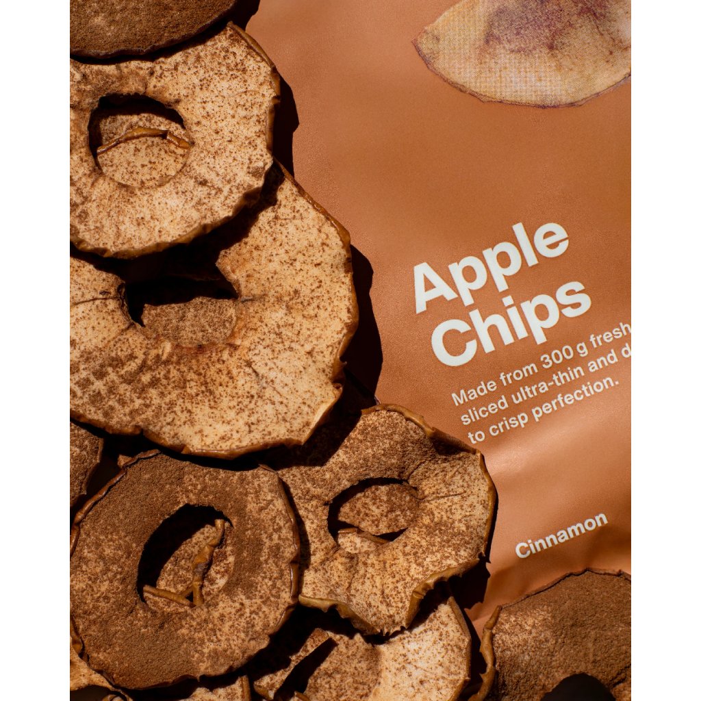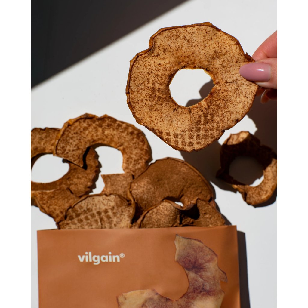 Vilgain Apfelchips werden aus 100 % frischen Äpfeln von sorgfältig ausgewählten europäischen Bauern hergestellt und leicht mit indonesischem Cassia-Zimt bestreut. Kein unnötiger Schnickschnack – nur schonend getrocknete Apfelscheiben der Sorten Golden Delicious, Jonagold und Idared mit natürlicher Süße und einem ausgeprägten Knack.