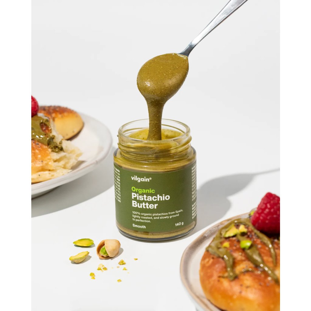 Hohe Qualität aus italienischer Produktion und Herkunft aus kontrolliert biologischem Anbau in Kombination mit hervorragendem Geschmack und hohem Gehalt an ungesättigten Fettsäuren macht Vilgain Pistazienbutter zu einem perfekten Begleiter für Porridge und zum Backen.