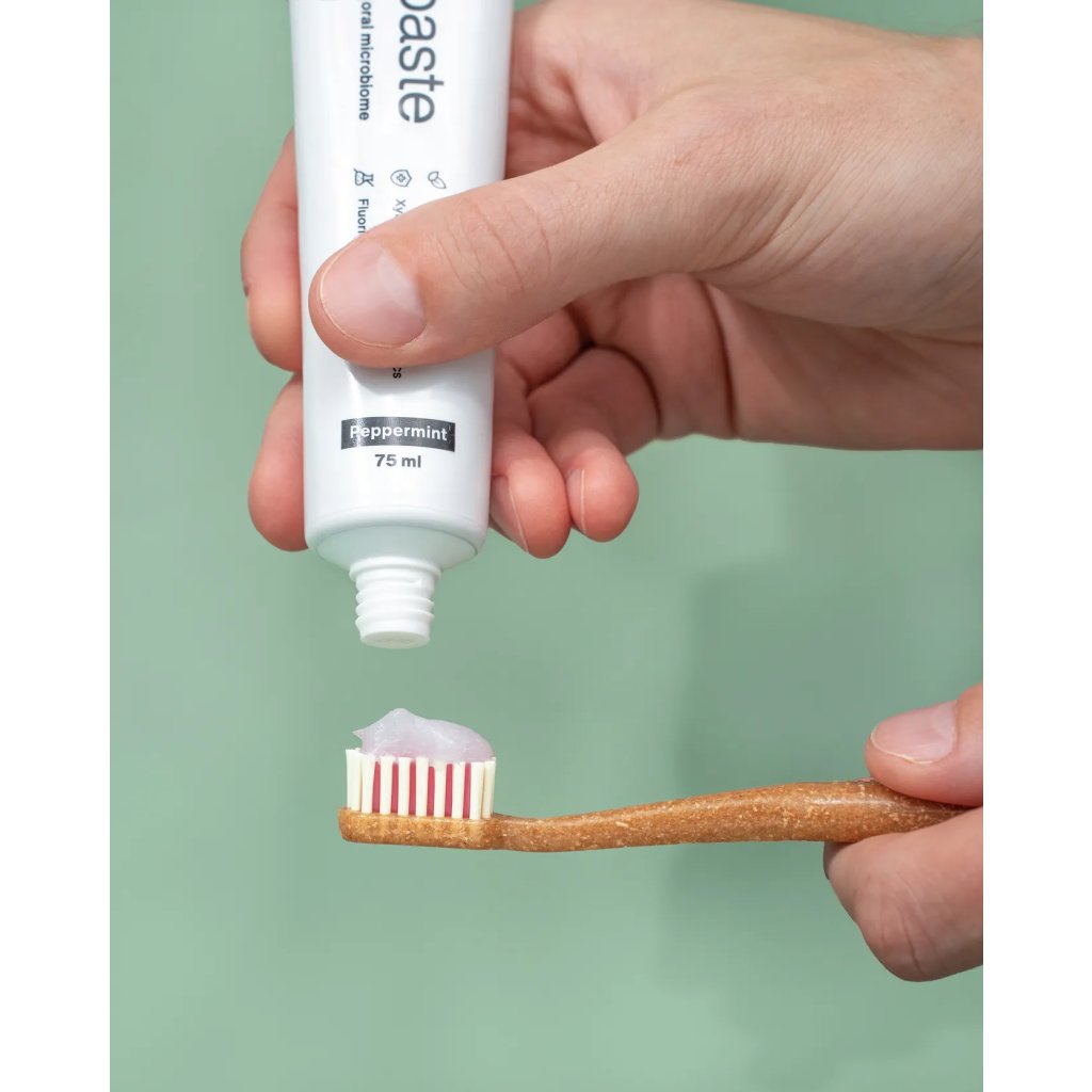 Gesunde Zähne und frischer Atem bedeuten, dass Sie ein gesundes Mikrobiom in Ihrem Mund haben. Neben regelmäßiger Hygiene und einer ausgewogenen Ernährung tragen auch die in unserer Paste enthaltenen Postbiotika zu einem gesunden Mikrobiom bei.