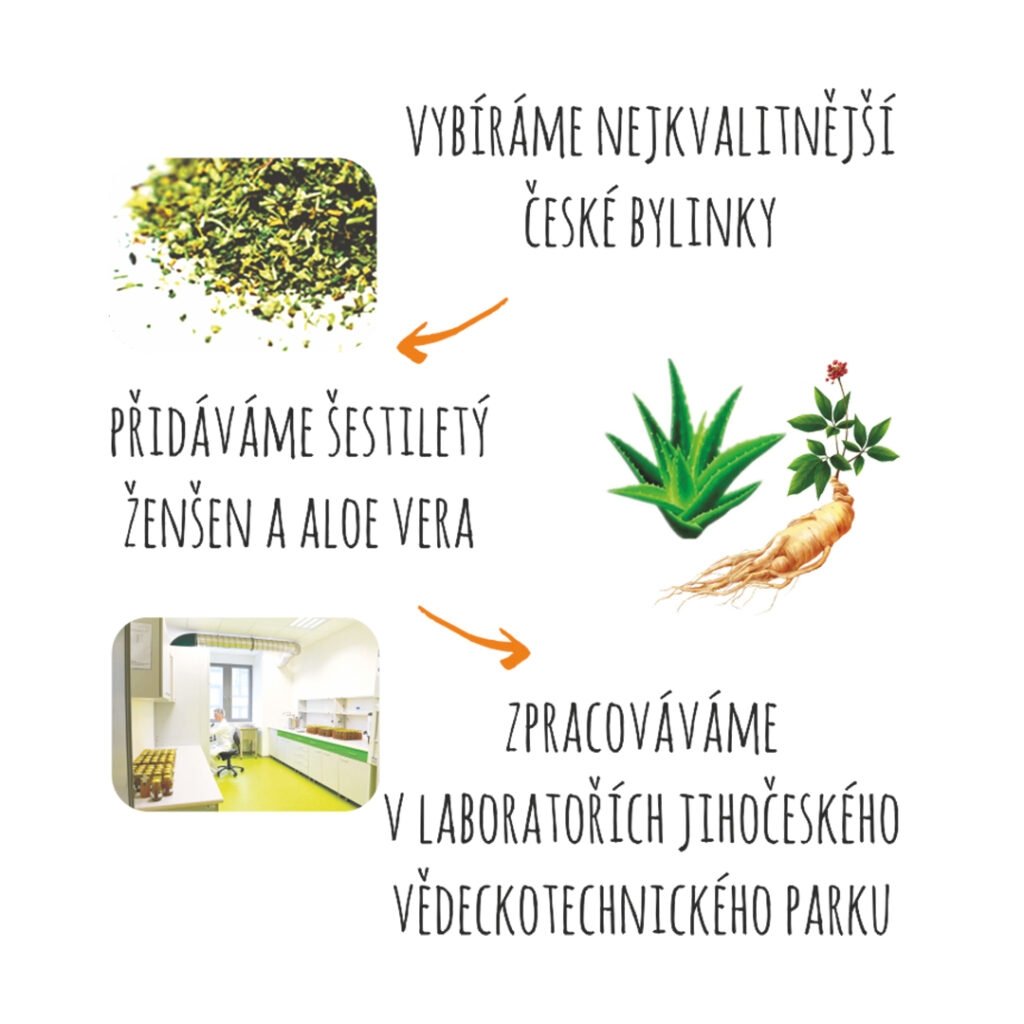 Zutaten: Wasser, Aloe Vera, Extrakt aus sechs Jahre altem echtem Ginseng (Hochgebirgsginseng aus dem Changbai-Gebirge, 230 mg pro Tagesdosis), Kräutermischung (geheimes Rezept).