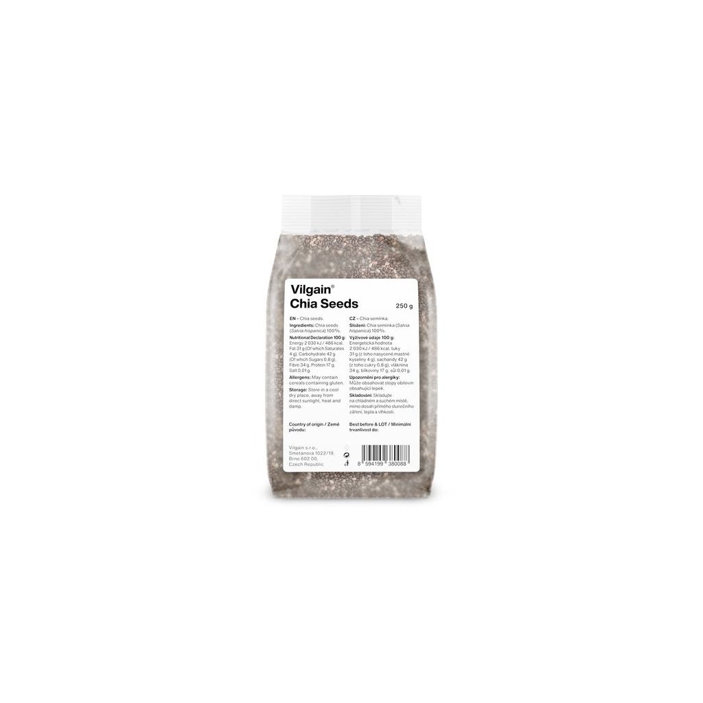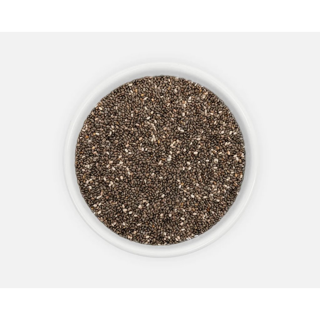 Chia seeds (Salvia hispanica) 100%. Country of origin: Paraguay. Allergy warning: May contain traces of cereals containing gluten.