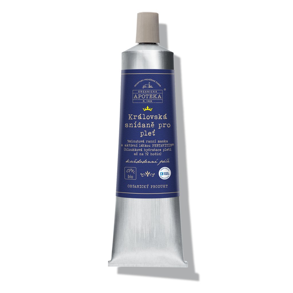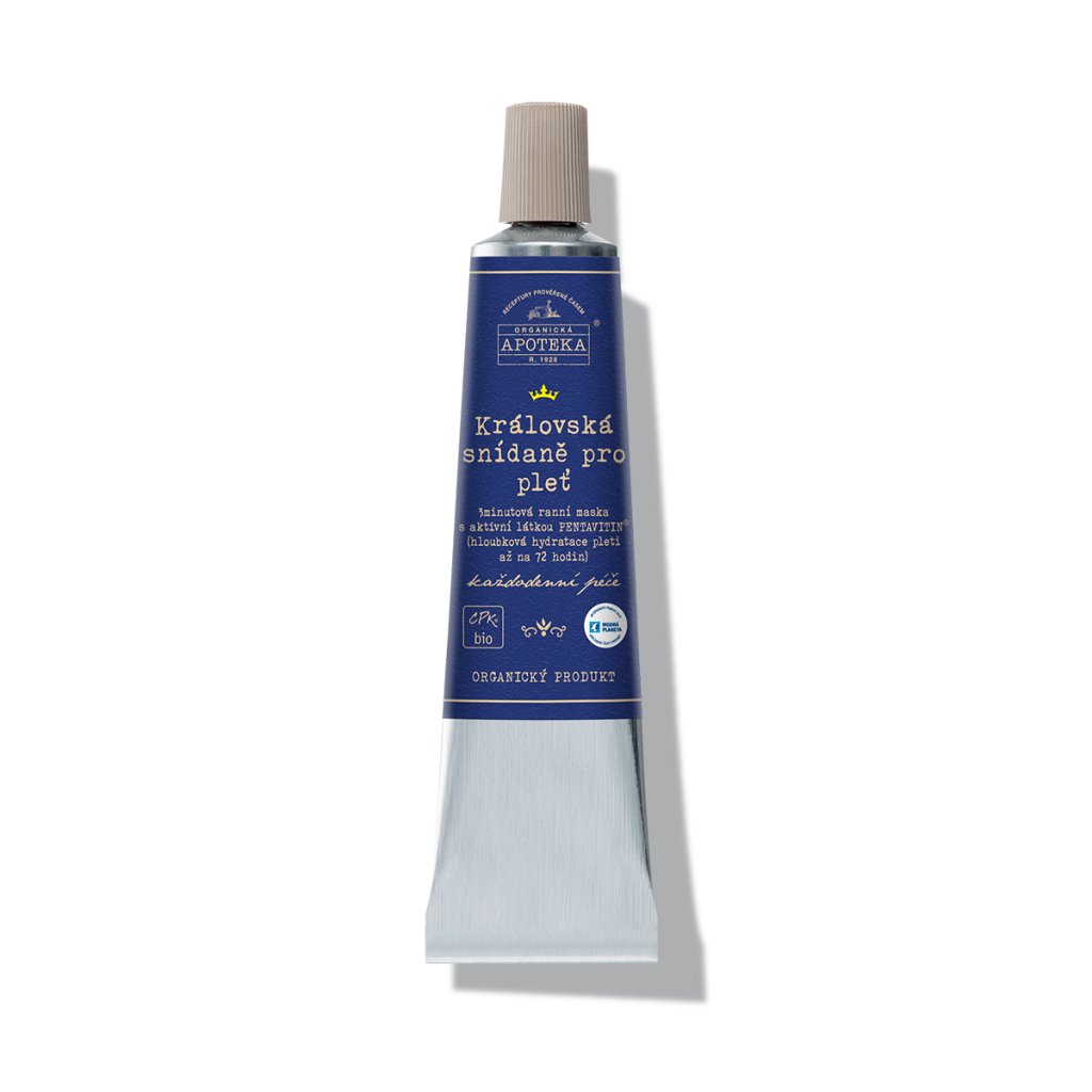 Královská snídaně pro pleť je 3minutová ranní maska s aktivní látkou Pentavitin® (72 hodin hydratace) s avokádovým olejem, extrakty z mateří kašičky, rakytníku a šalvějí muškátovou.