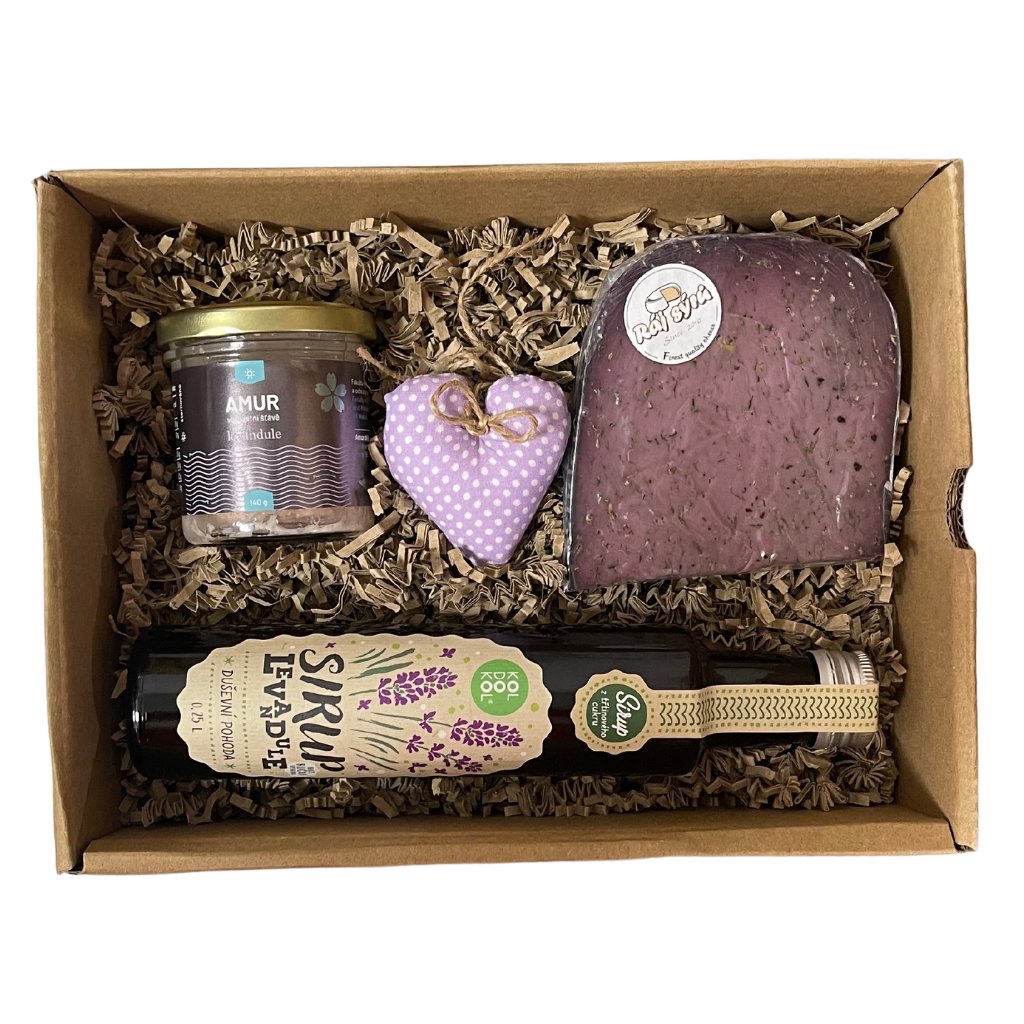 Sýr Basiron Levandule - Špičkový kravský sýr zaujme na první pohled nevšední fialovou barvou. Aby ne, mistři sýraři do něj přidali levanduli. Dodala nejen onu krásnou barvu, ale i velice zajímavou chuť. Navíc k ní přidali i mořskou řasu, která dává sýru ještě další rozměr.