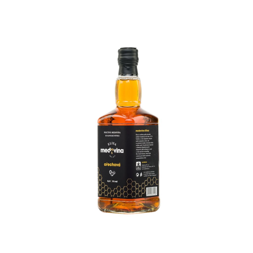 Velmi jemná medovina s příjemnou vůní. Jemná medovina s příjemnou vůní je dokonalým spojením sladkého medu a chutí vlašských ořechů.