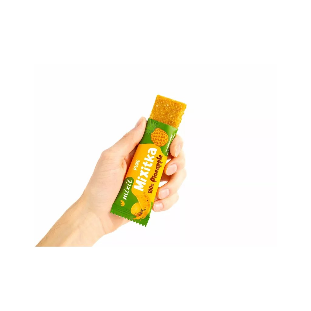 Ovoce do kapsy? A proč ne?! V Ovocné Mixitce najdete jen 100 % sušeného ananasu a nezbylo tak místo na žádný přidaný cukr ani umělá aromata. Jak už to u nás bývá zvykem, ovoce jsme nesířili, protože takové praktiky u nás nemají místo. Mixitka doplní energii, dodá tělu vitamin C a navíc příjemně sladce chutná. Ideální jako ovocná svačina na cesty, do práce nebo pro děti do školy. Zapomeňte na loupání ovoce, stačí jen roztrhnout obal!