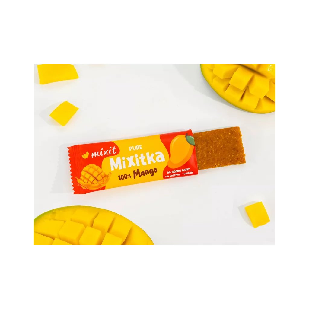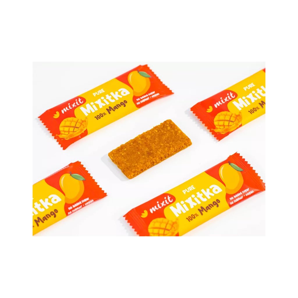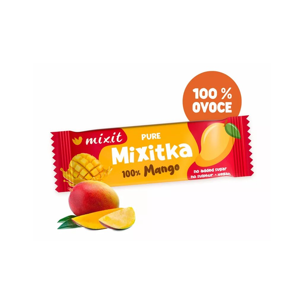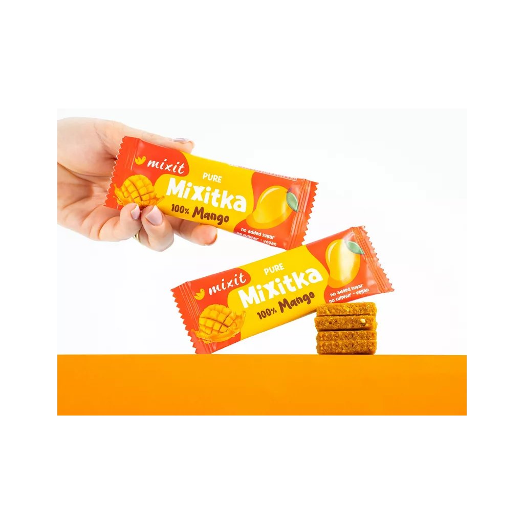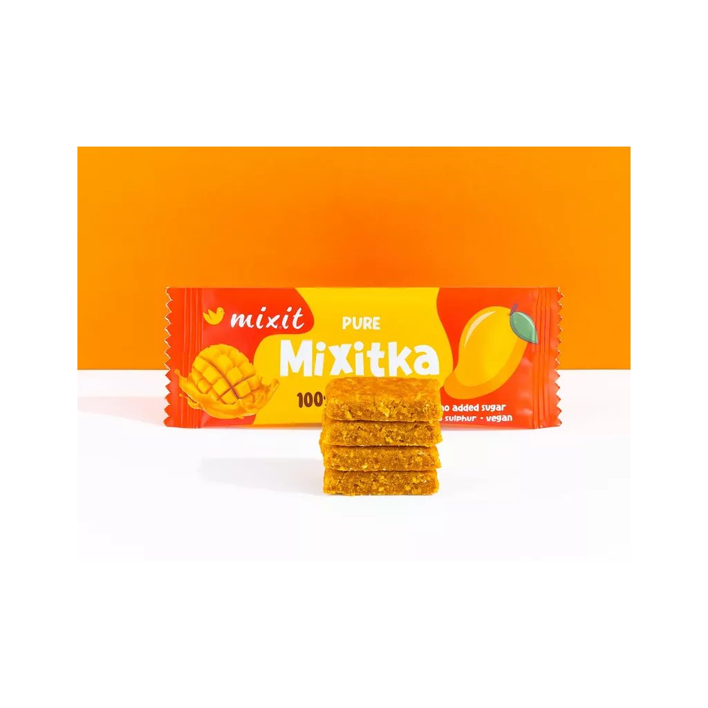 Ovoce do kapsy? A proč ne?! V Ovocné Mixitce najdete jen 100 % sušeného manga a nezbylo tak místo na žádný přidaný cukr ani umělá barviva a aromata. Jak už to u nás bývá zvykem, ovoce jsme nesířili, protože takové praktiky u nás nemají místo. Mixit tyčinka doplní energii, dodá tělu vitamin C a navíc příjemně sladce chutná. Ideální jako ovocná svačina na cesty, do práce nebo pro děti do školy. Zapomeňte na loupání ovoce, stačí jen roztrhnout obal!
