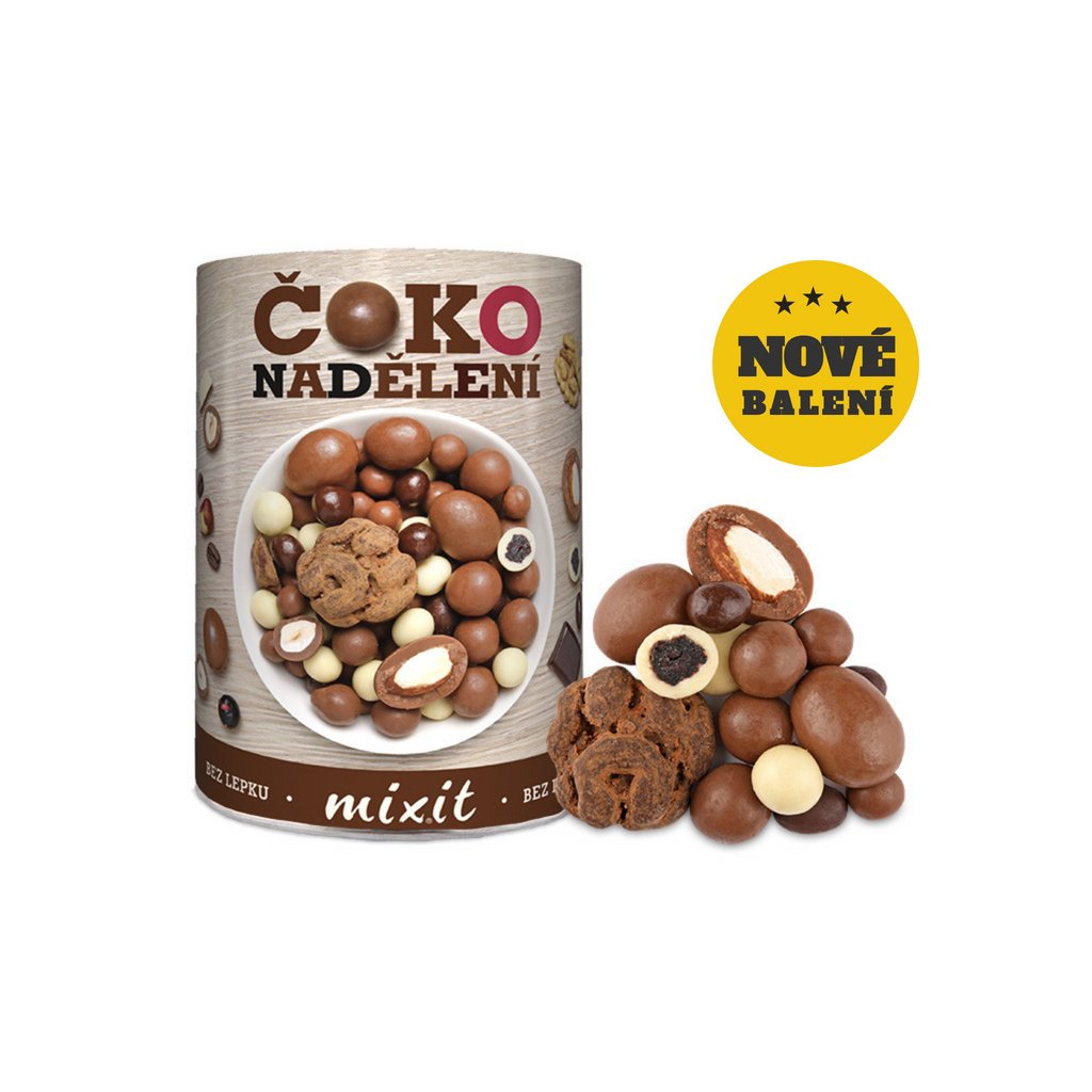 orzechy włoskie w gorzkiej czekoladzie z cynamonem (20%), prażone migdały w mlecznej czekoladzie (20%), czarne porzeczki w mlecznej czekoladzie (18%), aronia w białej czekoladzie (18%), orzechy laskowe w mlecznej czekoladzie (14%), ziarna kawy w gorzkiej czekolada (10%) (mleczna czekolada 41% (cukier, masło kakaowe, pełne mleko w proszku, miazga kakaowa, emulgator: lecytyny, naturalny aromat waniliowy), gorzka czekolada 24% (cukier, miazga kakaowa, masło kakaowe, emulgator: lecytyny; naturalny aromat waniliowy), biała czekolada 12% (cukier, masło kakaowe, pełne mleko w proszku, śmietanka w proszku, emulgator: lecytyny; naturalny aromat waniliowy), słodzona aronia 5,8% (cukier, aronia, dekstroza, regulator kwasowości: kwas cytrynowy), orzechy włoskie 4,2%, prażone orzechy laskowe 4,1%, prażone migdały 4%, liofilizowane czarne porzeczki 2,5%, prażone ziarna kawy 1,4%, mielony cynamon 0,8%, substancja glazurująca: guma arabska; cukier, miód). W czekoladzie mlecznej zawartość suchej masy kakaowej wynosi co najmniej 30%, w czekoladzie gorzkiej zawartość suchej masy kakaowej wynosi co najmniej 49%.