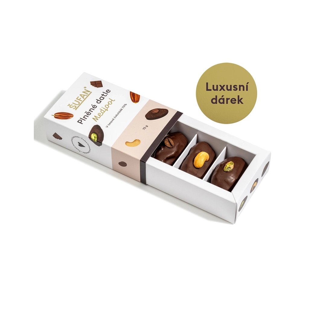 Každé sousto se pomalu rozplyne na jazyku a zanechá za sebou ten známý „ještě jednu“ pocit. Plněné datle jsou malá radost na konci dne, dárek, co potěší, i dezert, který si zaslouží své místo na svátečním stole. Prostě ŠUFAN – ručně, s poctivostí a s láskou k chuti.